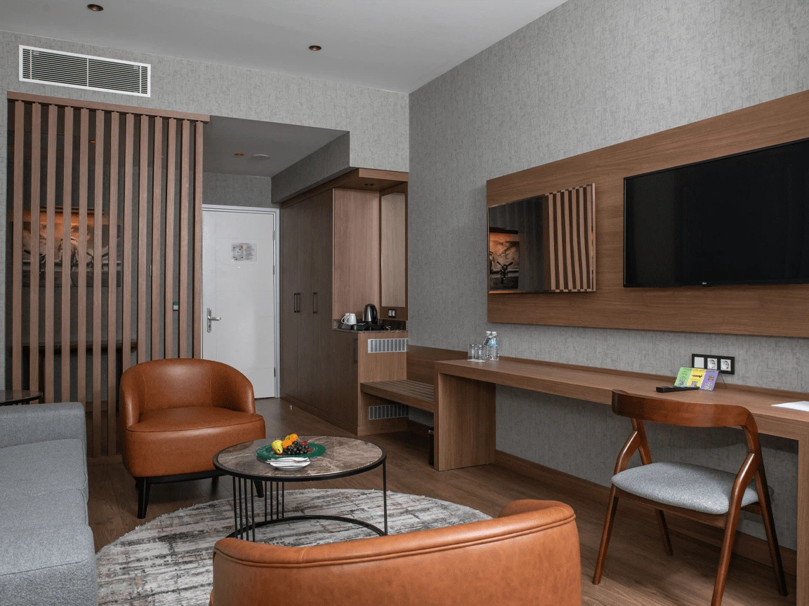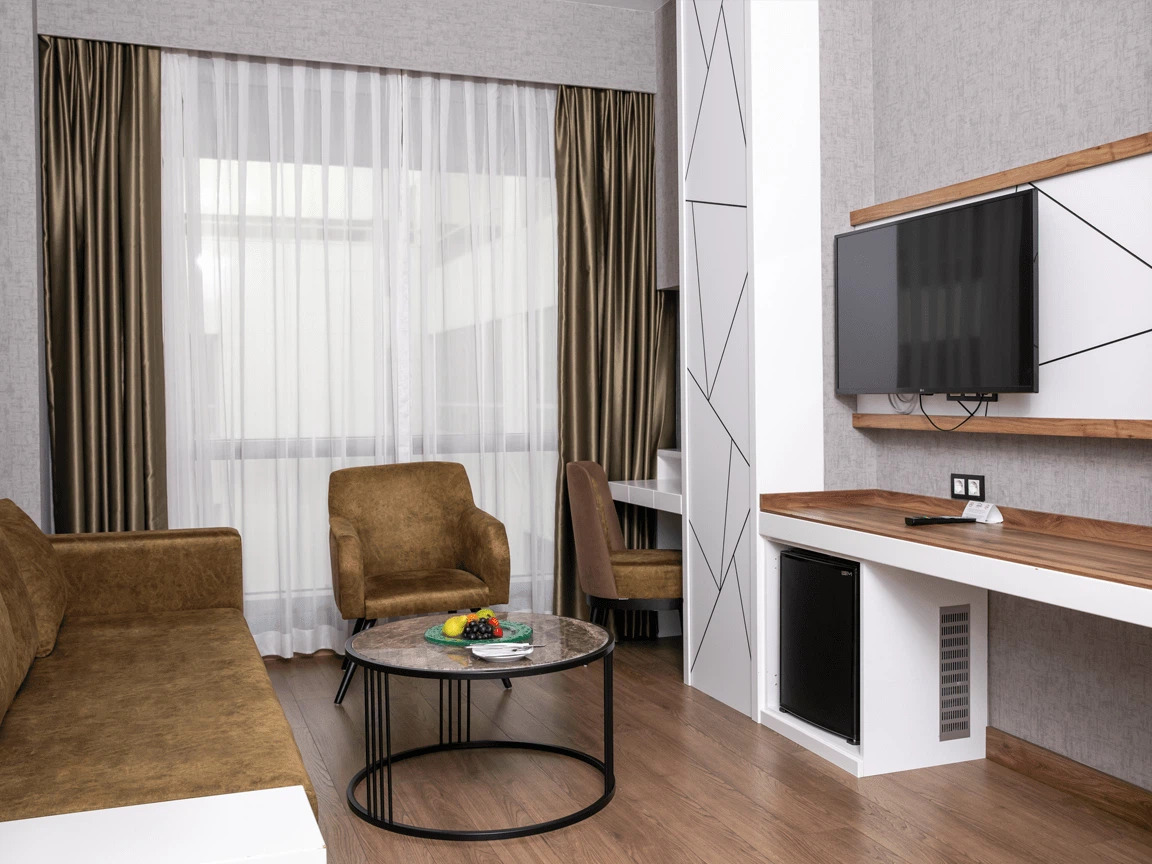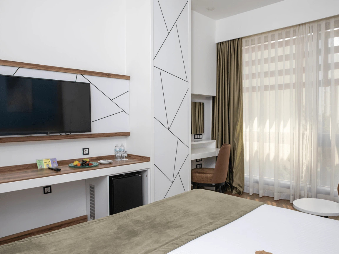 Siz değerli misafirlerimizin konforunu düşünerek dizayn edilmiş birbirinden şık 128 odasıyla sizlere hizmet vermektedir. Odalarında ; kablosuz internet erişimi, televizyon, uydu yayını, banyo-wc, çalışma masası, su ısıtıcısı, klima gibi olanaklar sunulmuştur.
