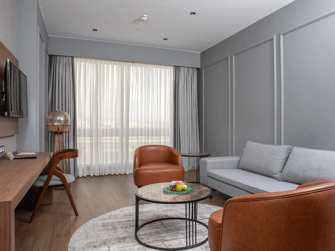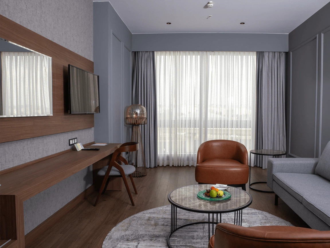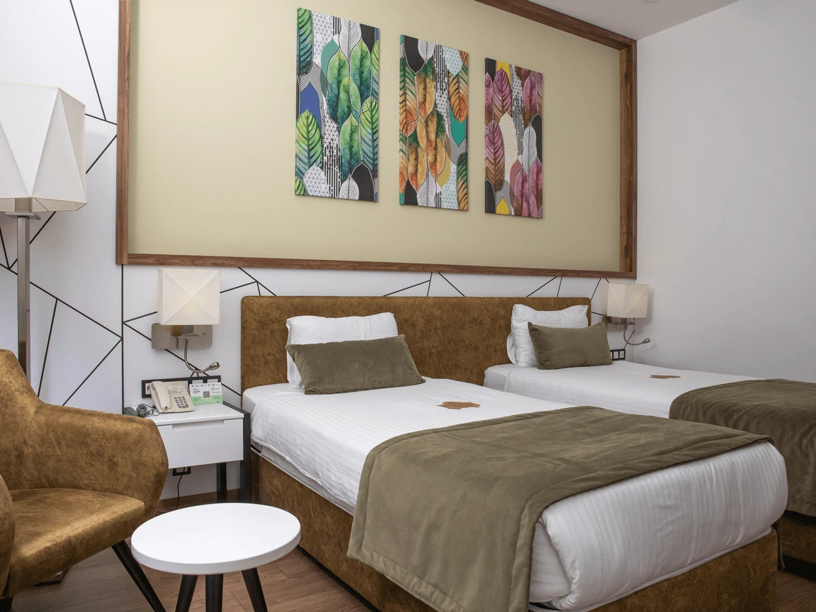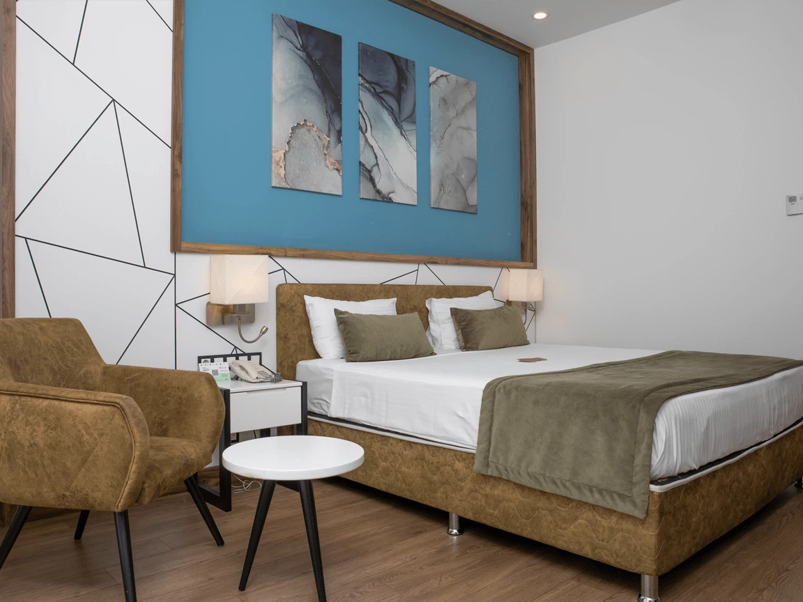 Siz değerli misafirlerimizin konforunu düşünerek dizayn edilmiş birbirinden şık 128 odasıyla sizlere hizmet vermektedir. Odalarında ; kablosuz internet erişimi, televizyon, uydu yayını, banyo-wc, çalışma masası, su ısıtıcısı, klima gibi olanaklar sunulmuştur.